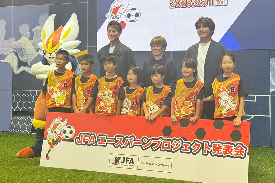 日本サッカー協会(JFA)は8月31日、株式会社ポケモンとともに東京ドームシティ内「blue-ing!」で「JFAエースバーンプロジェクト発表会」を開催した。サッカーに取り組む子どもたちの成長をともに応援する新たな取り組みを発表し、株式会社ポケモンがJFAの新たな「JFAソーシャルバリューパートナー」に就任することも明らかにされた。
