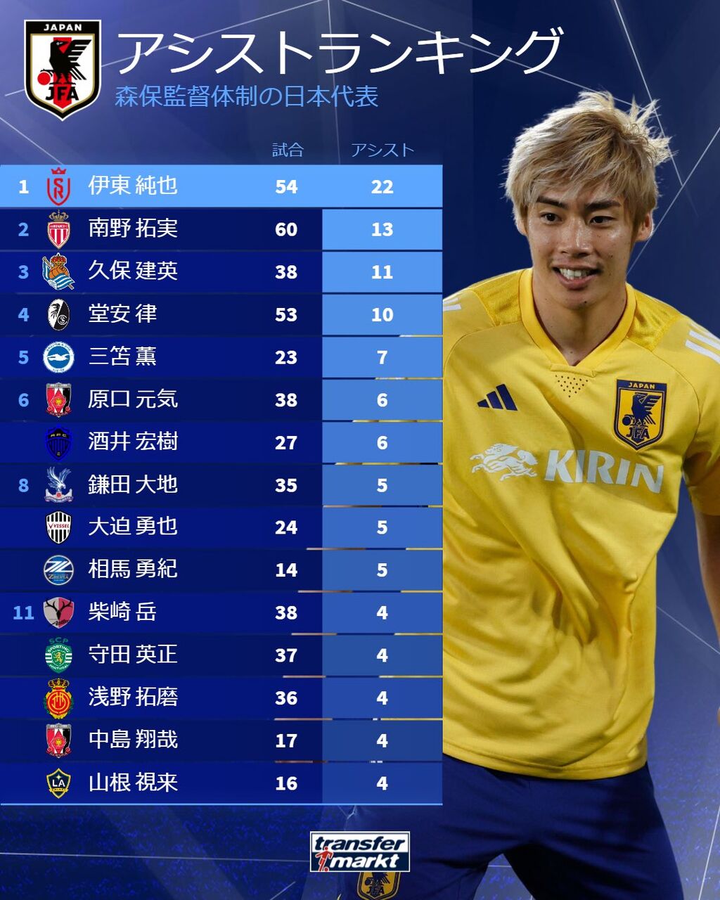 【驚愕】伊東純也の森保ジャパンでのアシスト数がダントツすぎるwww 2024年10月14日 カテゴリ:サッカー日本代表 RSSヘッドライン-news/topic- (出典 number.ismcdn.jp) (出典 【サッカー】三笘、日本代表 新記録の25戦連続得点へ 得意のオーストラリア戦に意気込み「ホームでは負けられない」 [阿弥陀ヶ峰★])41 名無しさん@恐縮です :2024/10/14(月) 08:20:40.00 ID:EEluLth40>>1 サッカー森保監督 体制での アシストランキング (出典 dec.2chan.net) 64 名無しさん@恐縮です :2024/10/14(月) 08:32:16.03 >>41 伊東純也 ダントツやん すげ~ (出典 【サッカー】三笘、日本代表 新記録の25戦連続得点へ 得意のオーストラリア戦に意気込み「ホームでは負けられない」 [阿弥陀ヶ峰★]) こちらもおすすめ! このページは「サッカー早刷りまとめ」が管理しています。 「サッカー日本代表」カテゴリの最新記事 コメントする コメントフォーム 名前 コメント 記事の評価 リセット リセット 顔 星 情報を記憶 コメントを投稿する  【速報】イングランド連敗回避!UNL第4節の勝者と勝負の行方【サッカー】森保Jに隠された「決まり」とは?選手が明かす代表選考基準