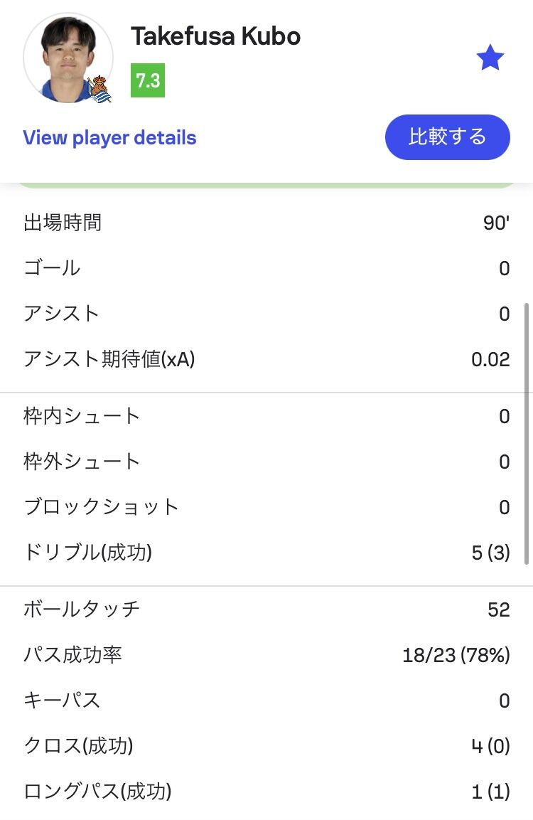 デュエルもタックルも久保の方が数こなしてて勝率も高くてインターセプトもしてるし被ファールも多かった